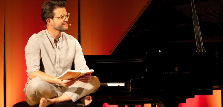 Der Pianist, Yoga-Lehrer und Autor Dennis Alexander Volk spielt mit Inspiration und Leidenschaft Klaviermusik zum Entspannen und bei sich selbst Ankommen. Er berührt die Herzen der Zuhörer mit seiner heilsamen Musik und ermutigt mit Impulsen aus seinem Buch „Storytelling Piano“, das Leben neu zu entdecken. Der Künstler liest während des Konzertes einfühlsam aus seinem Buch, welches dazu anregt, das Leben als Solches zu zelebrieren. Zudem präsentiert er an diesem Abend sein neues Album mit wunderschönen Kompositionen und wird bei ausgewählten Stücken von einer Violinistin begleitet.